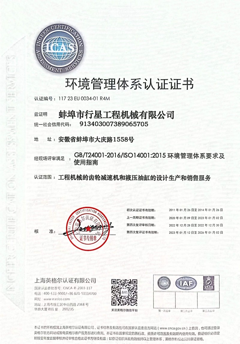 發證機構:   上海英格爾認證有限公司 發證時間 :   2011-01-26