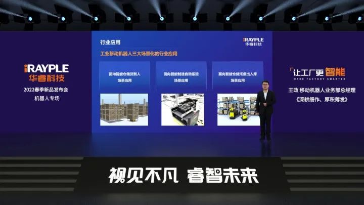 王政認為:“未來的移動機器人將由單一的SLAM導(dǎo)航向自然導(dǎo)航發(fā)展,多傳感器融合導(dǎo)航方式實現(xiàn)自然導(dǎo)航,能夠在復(fù)雜的環(huán)境下類人自主行走,具有更好自主性和靈活性。”移動機器人沒有特定的行業(yè)屬性,但是具備較強場景化屬性。華睿移動機器人在行業(yè)應(yīng)用方面的關(guān)鍵數(shù)據(jù)是擁有50+的典型行業(yè)的應(yīng)用案例,覆蓋1000+數(shù)量的客戶群,單一項目運行數(shù)量超過100臺,單一項目金額超過5000萬以上。在典型行業(yè)中的應(yīng)用,主要有鋰電、光伏、3C、汽車汽配、食品包裝、醫(yī)藥、重工、紡織等等。“我們的產(chǎn)品在千行百業(yè)的物流搬運中得到廣泛的應(yīng)用。我們的目標是聚焦產(chǎn)品和技術(shù),賦能智能制造和場內(nèi)物流。”