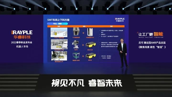 華??萍紳摲e升型AMR產(chǎn)品總監(jiān)丁南在本次發(fā)布會上以“高效精準 助力制造”為主題的演講。他表示:“潛伏舉升型AMR作為目前業(yè)內(nèi)最常用的AMR類型,通過不斷挖掘不同行業(yè)客戶的需求,除了滿足原有的電商倉儲行業(yè)外,在新能源,汽配,屏顯,重工等行業(yè)也得到了廣泛的應(yīng)用。”全新推出的新一代600KG潛伏舉升型AMR,在續(xù)航,效率上較上代產(chǎn)品得到了大幅提升,同時通過安全傳感器、識別算法、導(dǎo)航算法、調(diào)度算法的智能融合,實現(xiàn)了整車的360°避障和立體避障,加強了產(chǎn)品安全性,模塊化設(shè)計,可根據(jù)實際項目、場景需要,靈活調(diào)整產(chǎn)品配置,滿足不同行業(yè)客戶的需求,升級了多種實施工具,降低了現(xiàn)場實施、維護設(shè)備的難度,讓用戶使用更簡單。