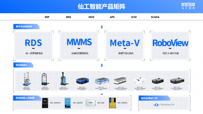 為了解決客戶最核心的痛點,仙工智能智能、高效、可靠、易用的端到端工業(yè)物流解決方案,涵蓋軟件產(chǎn)品統(tǒng)一資源調(diào)度系統(tǒng) RDS,倉儲物流管理系統(tǒng) MWMS,數(shù)據(jù)可視化系統(tǒng) meta-V,視覺 AI 解決方案;硬件產(chǎn)品 SRC 移動機器人控制器、以及基于 SRC 的各類移動機器人,如激光 SLAM 自動叉車,激光 SLAM 料箱機器人,頂升機器人、復(fù)合機器人等。各類客戶都可以根據(jù)自己的需要從其中獲取理想且滿足定制要求的軟硬件產(chǎn)品及解決方案。