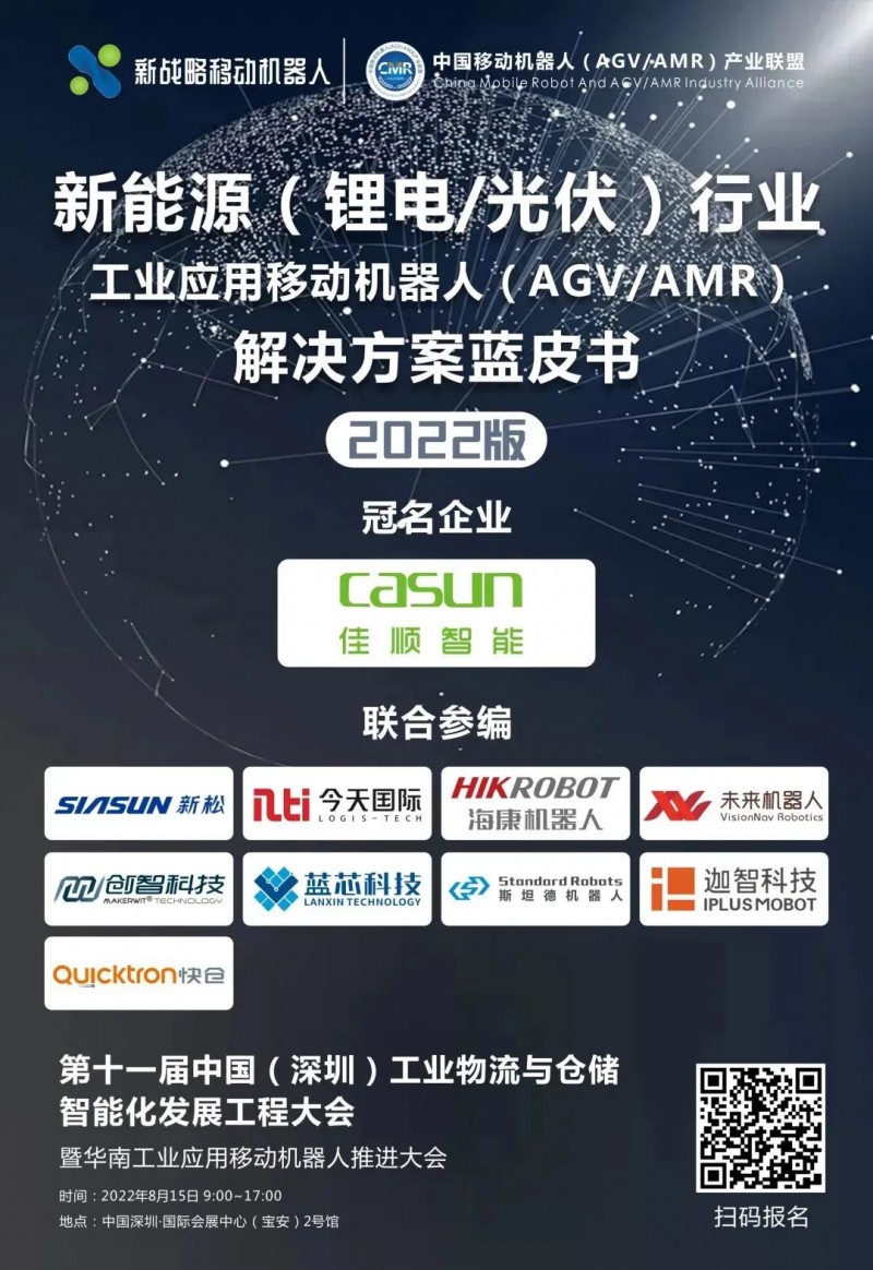 8月15日,由新松參編的《新能源行業用移動機器人(AGV/AMR)解決方案藍皮書(2022版)》也將在“中國(深圳)工業物流與倉儲智能化發展工程大會”發布,敬請期待!