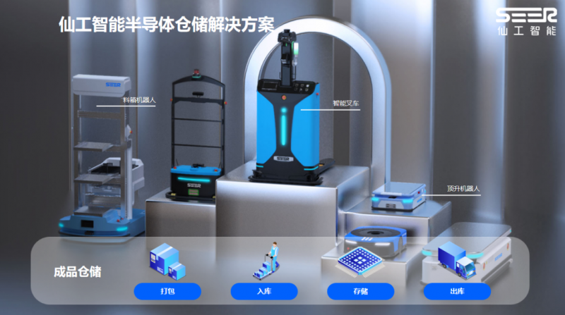 仙工智能針對半導(dǎo)體倉儲的解決方案擁有天然優(yōu)勢,因?yàn)橄晒ぶ悄墚a(chǎn)品類型眾多,涵蓋控制器、移動機(jī)器人底盤、料箱機(jī)器人和智能叉車,能夠?qū)崿F(xiàn)整個(gè)半導(dǎo)體打包入庫存儲以及出庫場景全覆蓋。
