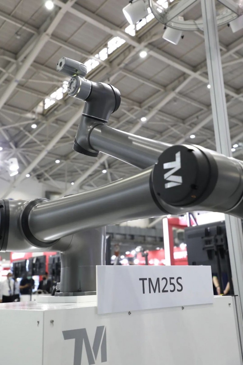 達明機器人的AI Cobot,是具有AI功能的全方位智慧協作機器人,包含達明自行研發AI的智慧視覺解決方案- TM AI+,以及內建智慧視覺系統,涵蓋傳統機器視覺與先進AI視覺能力,能輕易找出難以辨識的瑕疵,解決各產業經常面臨的瑕疵檢測難題。此次展出的半導體晶圓蒸鍍工序的整料應用,是將AI、協作機器人及2D+3D視覺,全面整合為一體,快速協助半導體產業進行晶圓的精密辨識與取放,大幅降低以往需整合多項視覺的時間及費用。目前也運用在日系汽車大廠出廠前的質量控管,以及導入連鎖披薩、炸雞店的產品辨識與控管,從制造業、汽車產業一直到食品產業皆可廣泛運用。