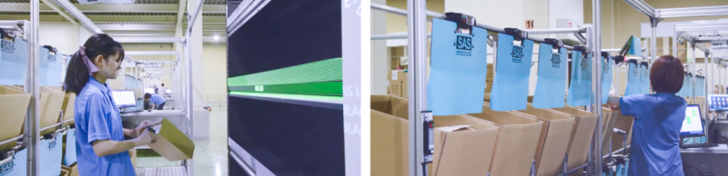 海康機器人系統(tǒng)與PPS和SAS無縫對接,PPS通過投影的方式照亮需上架和下架的貨的倉位,具備放錯報警機制,SAS增加開門動作,有效防呆,防止人工投錯,提升揀選正確率至近100%。