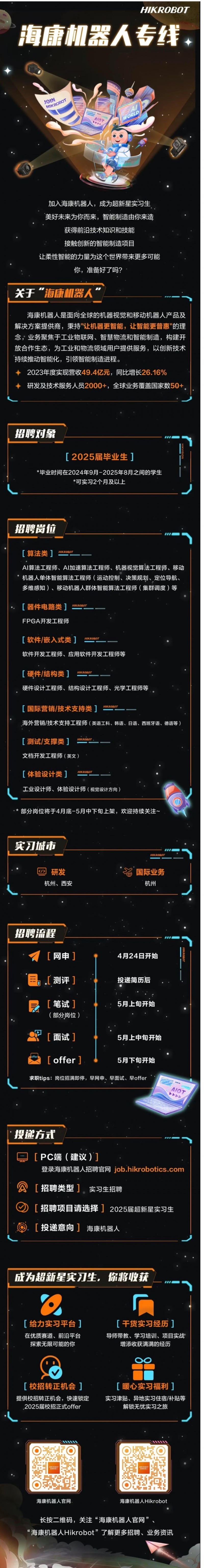 海康機(jī)器人2025屆超新星實(shí)習(xí)生火熱招聘中,點(diǎn)擊原文即刻投遞,和我們一起探索柔性智能的更多可能!