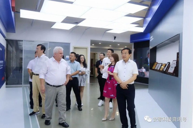 安歌科技集團董事長兼CEO姜躍君先生及各部門負責人共同接待了房教授一行,帶領參觀了公司展廳及生產基地,并詳細介紹了安歌科技的發展歷程、核心產品、研發團隊、集團情況等。雙方針對整體規劃方案的提升、從集控到分控的輸送系統、多穿系統的研發、戰略市場的開發等做了深入的交流和探討,并正式開啟戰略合作。