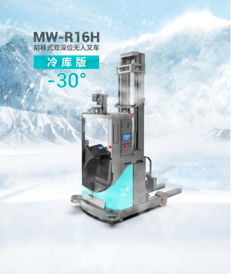 以解決行業(yè)痛點為導向,深耕行業(yè),持續(xù)創(chuàng)新,勱微機器人推出冷庫版前移式無人叉車MW-R16H,除能解決在冷庫等極端環(huán)境復雜場景外,在高位貨架作業(yè)中,可提升30%以上倉儲庫容率,實現有限空間內的高密度存儲。