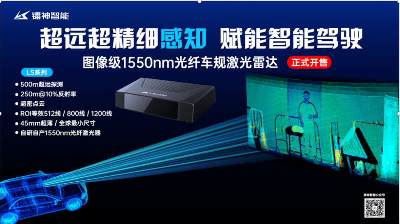 鐳神智能圖像級1550nm光纖激光雷達采用自研自產的1550nm光纖激光器,探測距離可達500m,10%反射率條件下可探測250m,最遠可定制2000米;支持配置128線、256線及512線的掃描通路,測點速率分別可達到160萬點/秒、320萬點/秒、640萬點/秒,ROI區域可等效512線/800線/1200線,點云成像細膩,細節突出;225x120x45mm的整機尺寸較同類產品小20%以上,是全球最小尺寸的1550nm光纖車規激光雷達;其探測性能全球領先,為實現高階自動駕駛提供遠距離超強環境感知能力。