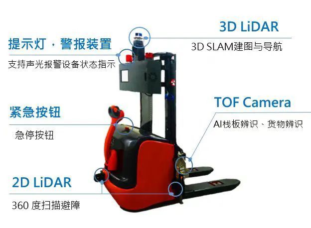 據了解,當前市場上大部分無人叉車以2D激光雷達導航為主,此種導航方式掃描速度快、分辨率強、可靠性高,在測試周圍障礙物的距離和精度上比較精準。但2D激光雷達僅能掃描一個平面,建立的2D地圖特征信息少,較難解決全局定位問題。同時,成像缺乏高度信息,難以識別懸空障礙物,只能應用于布局相對簡單、固定的室內場景,難以滿足無人叉車在復雜場景的導航定位需求。