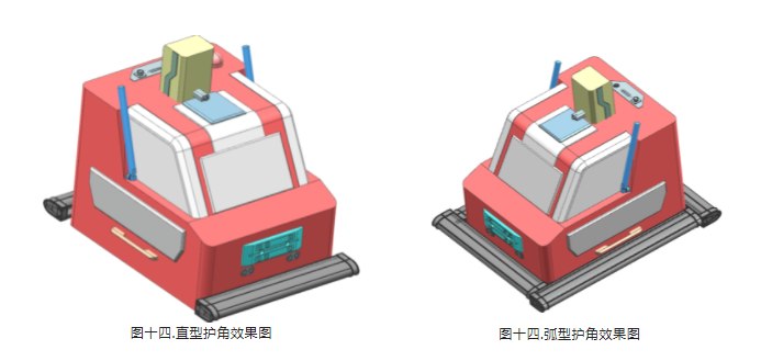 同時為了和客戶移動部件更好地配合組裝安全觸邊,沃美諾一次性開發了多款口型安全觸邊連接器(用的比較多的兩款口型見圖十二);以配合內圓角分類,可分為直角連接器,R50連接器及R80連接器(見圖十三)。當這三種連接器都無法達到客戶的完美要求時,沃美諾還可根據客戶提供的安全觸邊安裝區域數據進行個性化定制。