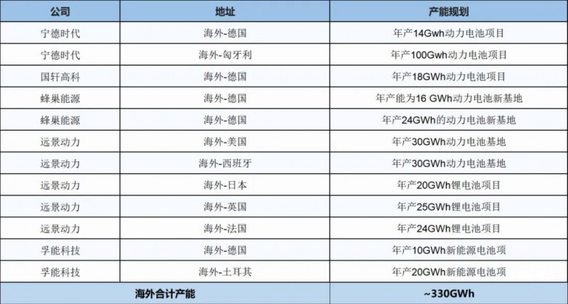 全國(guó)動(dòng)力與儲(chǔ)能電池基地產(chǎn)能統(tǒng)計(jì)表5---海外地區(qū)