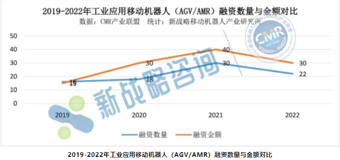 根據(jù)CMR聯(lián)盟數(shù)據(jù)統(tǒng)計,2022年工業(yè)應(yīng)用移動機器人行業(yè)共發(fā)生22起融資事件,融資總額超過30億人民幣,無論是融資數(shù)量還是融資總金額方面,都較2021年有所下降。