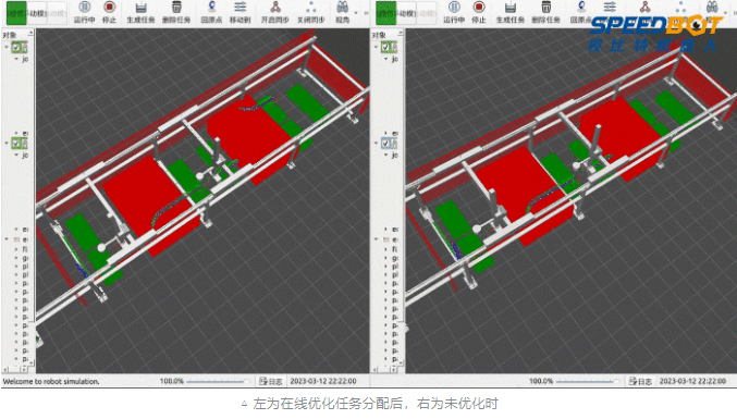 在多任務(wù)場景下,桁架機器人存在多個共軸的機械臂,不同臂在工作空間內(nèi)的任務(wù)時序直接影響整體作業(yè)效率。SpeedTruss智能桁架控制器建立了基于時空約束的最優(yōu)任務(wù)分配模型,最大限度地提高工作效率。