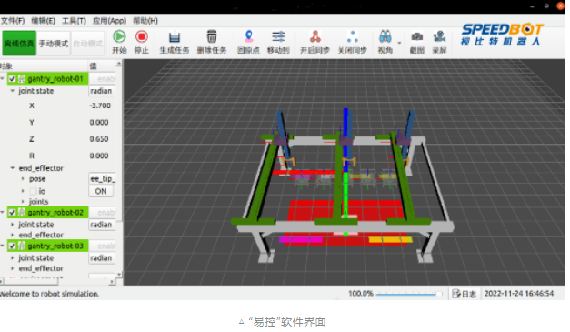在使用SpeedTruss智能桁架控制器時,用戶只需在軟件中調(diào)用任務(wù)指令接口即可實現(xiàn)相應(yīng)功能,無需進行額外的開發(fā)工作,輕松實現(xiàn)多臂桁架機器人的柔性運動控制。