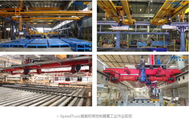 在重工制造業(yè)鋼板切割件分揀場景,來料零件重且規(guī)格多樣、作業(yè)空間跨距大、生產(chǎn)環(huán)境復(fù)雜,難點在于桁架高速重載運動以及多臂無碰協(xié)同作業(yè)的控制。國內(nèi)多家重工龍頭企業(yè)生產(chǎn)線采用SpeedTruss智能桁架控制器進行多臂桁架的智能調(diào)度與協(xié)同作業(yè),實時規(guī)劃最優(yōu)運動軌跡,主動避障、多機無碰、高效作業(yè),輕松完成了上萬種鋼板切割件的柔性揀選。