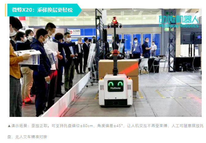 日本關(guān)西物流展會現(xiàn)場,小身板、大能量的新形態(tài)無人叉車「微蜂X20」吸睛無數(shù),該車型自重僅365kg,對地面承重能力要求低,支持模塊化極速部署,有效滿足場內(nèi)跨樓層、地堆庫、極窄巷道搬運場景。