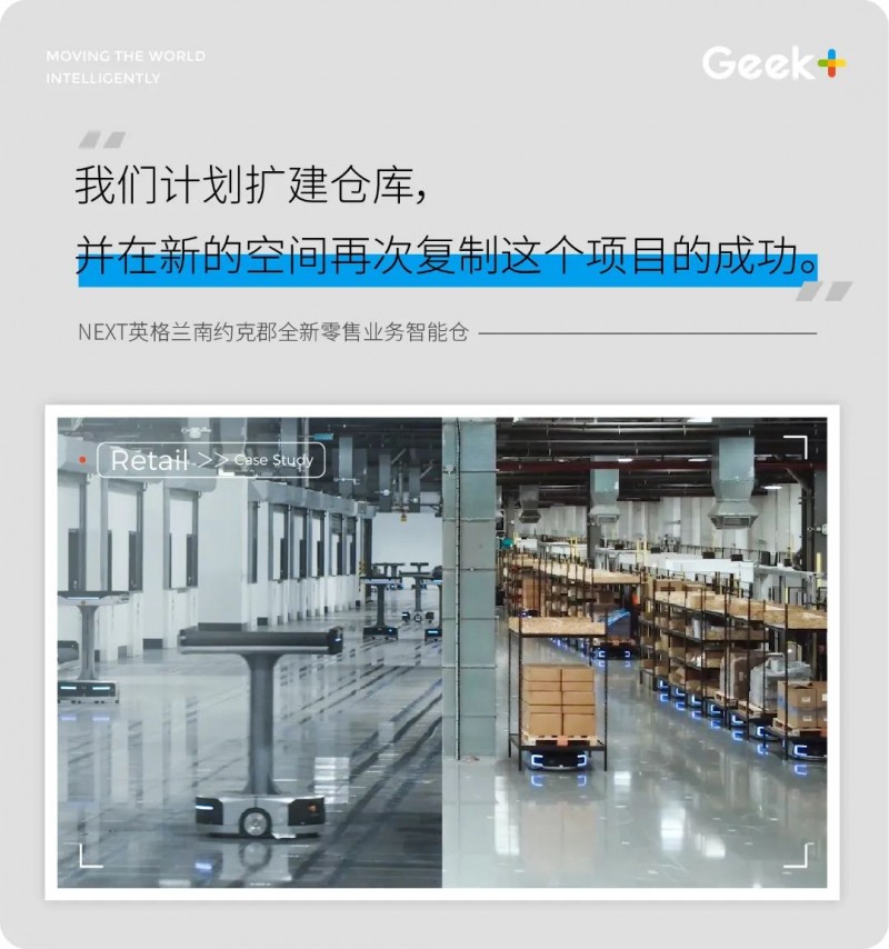 NEXT駐場經理Liam Jenkinson表示:“與極智嘉的合作給我們帶來了非常積極的體驗,不論是從一開始還是后續持續的支持過程中。極智嘉的揀選和分揀系統提供的靈活性對我們的運營至關重要,而我們的倉庫管理系統與極智嘉的機器人管理系統之間的整合也非常順暢。隨著我們業務的不斷拓展,我們計劃擴建倉庫,并考慮在新的空間再次復制這個項目的成功。”