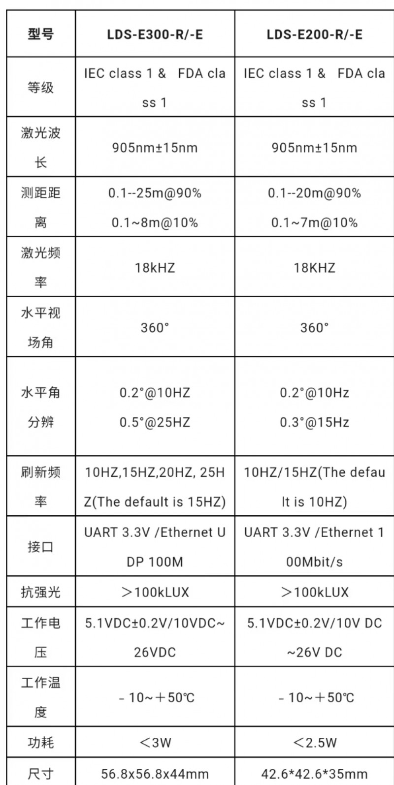 藍(lán)海光電敏銳的覺察到了無人叉車在叉臂上的避障需求,針對目前工業(yè)激光雷達(dá)普遍大體積高厚度的特點(diǎn)開發(fā)出了輕薄款的LDS-E300-R/-E和LDS-E200-R/-E,厚度僅為44mm/35mm。