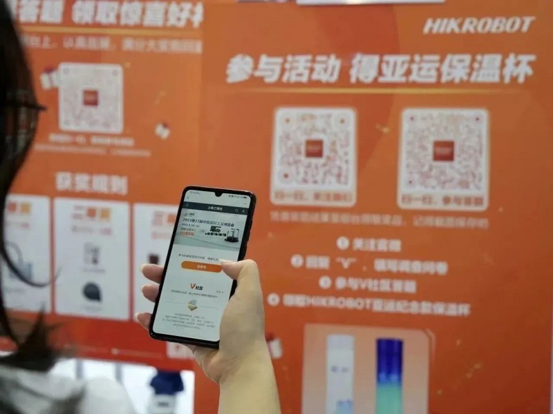 如果您還沒有盡興,那現場活動一定可以讓您滿載而歸,海康機器人V社區是專為機器視覺開發者和技術愛好者打造的分享交流平臺,匯聚了上萬個機器視覺從業者,致力于幫助大家快速入門機器視覺行業,共建機器視覺生態。大家可以現場掃碼注冊V社區,并參與展品相關的知識問答,贏取豐厚大禮,可不要錯過呦!現場除了掃碼答題互動,參與問卷填寫就能帶走亞運會專屬紀念保溫杯,禮品有限先到先得!