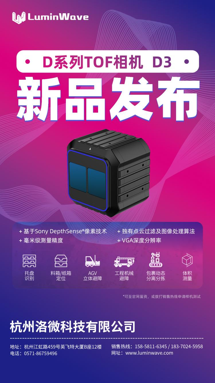 隨著工業(yè)自動化、物流科技、移動機器人領(lǐng)域?qū)ψ詣踊?、智能化需求的逐漸提升,更高精度、更智能的感知需求也在不斷增長。洛微科技全新高性能D系列TOF相機D3的高精度、高性能及廣泛的應(yīng)用場景,將會為客戶帶來更好的產(chǎn)品體驗和更大的商業(yè)價值。