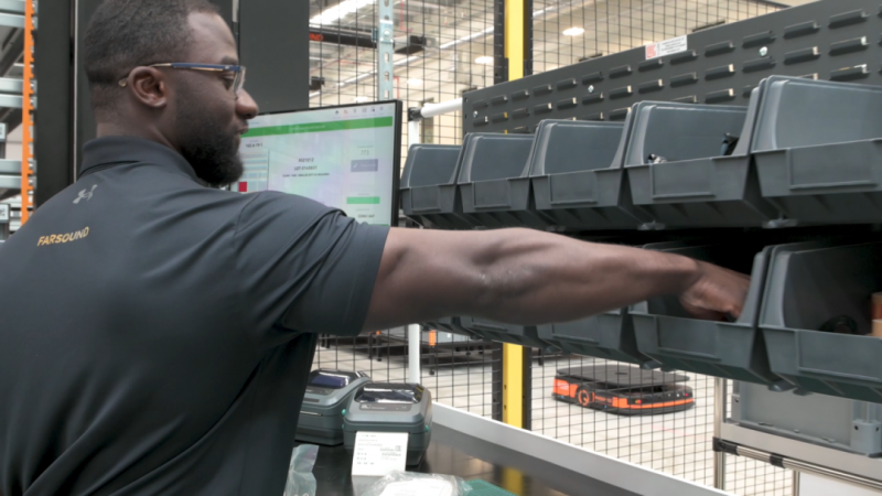Farsound定制了多種貨架來滿足不同種類零部件的搬運需求;同時,海康機器人LMR可實現貨架的柔性適配。