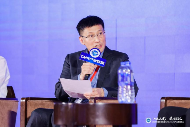 2023年12月13日,在“2023中國移動機器人(AGV/AMR)產業發展年會-AMR新技術融合專場”的圓桌討論環節,CMR產業聯盟主席、新松機器人首席技術官張雷,CMR產業聯盟副主席、國自機器人總裁王文斐,CMR產業聯盟副主席、機科股份副總經理公建寧,CMR產業聯盟副主席、CSG華曉執行董事兼總經理魯兵,海柔創新中國區總裁劉敬濤,牧星智能標品事業部總經理何梓杰以及欣旺達智能制造總經理周常福圍繞“制造、物流智能化升級過程中移動機器人參與的廣度與深度、中國移動機器人全球化進程中的機會與挑戰、直面行業弊端,如何理性參與行業競合”等本年度熱點話題,分享企業在新業態下的發展思路與成功經驗。