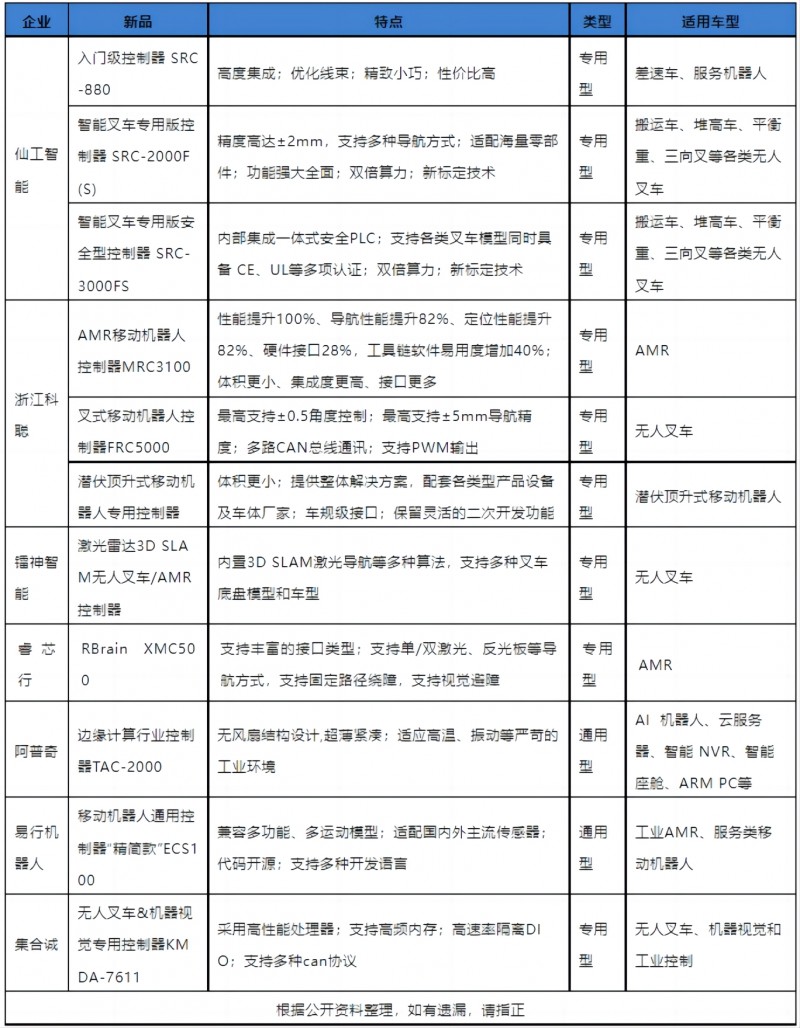 總體來看,隨著移動機器人專用控制器應用的深入,控制器廠商對于機器人應用場景理解也逐步加深,系列產品的精細化程度有所提高,同時,對于高集成度、功能安全更為重視。