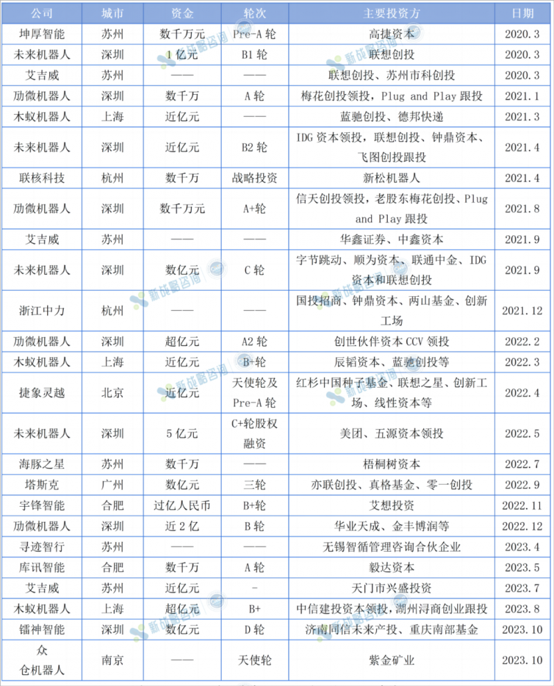 圖表:2020-2023年無人叉車企業融資事件(根據公開信息整理,如有未完善之處,請指正)