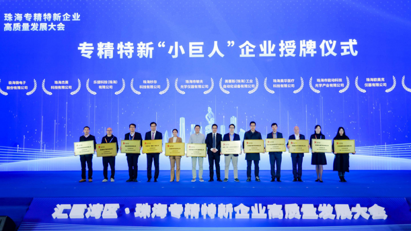 珠海專精特新企業高質量發展大會以“扶持‘小巨人’、發展大產業”為主題,在珠海國際會展中心舉辦,并對34家新認證的國家級專精特新“小巨人”企業代表進行集中授牌。