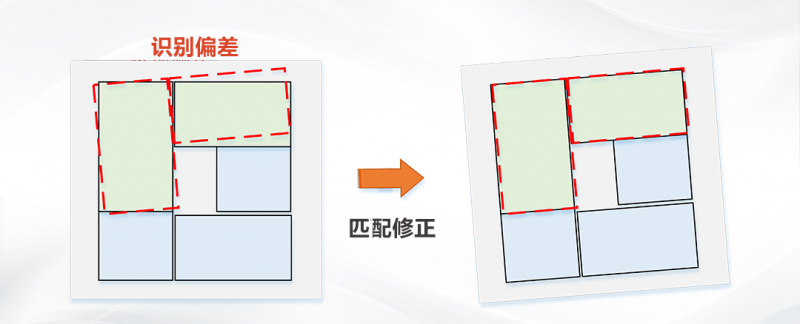 面對(duì)產(chǎn)線上出現(xiàn)的異常斷電等情況,系統(tǒng)中支持視覺(jué)續(xù)碼,快速恢復(fù)生產(chǎn)狀態(tài)。通過(guò)對(duì)已碼包裹位姿與預(yù)設(shè)的垛型的匹配,確認(rèn)當(dāng)前狀態(tài)并引導(dǎo)準(zhǔn)確續(xù)碼。同時(shí)垛型匹配時(shí)會(huì)將視覺(jué)識(shí)別到的偏差進(jìn)行分析,修正垛型棧板,保障現(xiàn)場(chǎng)柔性生產(chǎn)。