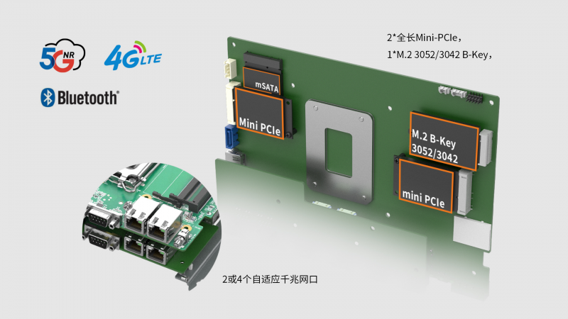 ² 1*M.2 3052/3042 B-Key,帶SIM卡槽,帶PCIeX1和USB2.0信號(hào),支持5G NR模塊
