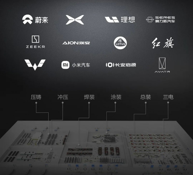 目前,??禉C器人已助力蔚來、小鵬、理想、賽力斯、極氪、埃安、路特斯、紅旗、五菱、小米、啟源、阿維塔等大家耳熟能詳的新能源汽車品牌,在沖、焊、涂、總、三電等車間推行智能制造。