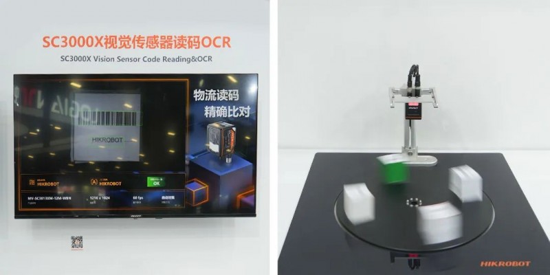 該相機集成像、算法、存儲、通信于一身,內部嵌入了讀碼、有無、正反、測量、識別和計數等防錯檢測算法,充分保證信息讀取的準確性?,F場展示SC3000X對物流面單碼和OCR的讀取情況,即便面單在轉盤上高速轉動,相機仍可穩定讀取作業,且對碼和字符進行對比,是3C流通行業追溯信息的重要保障。