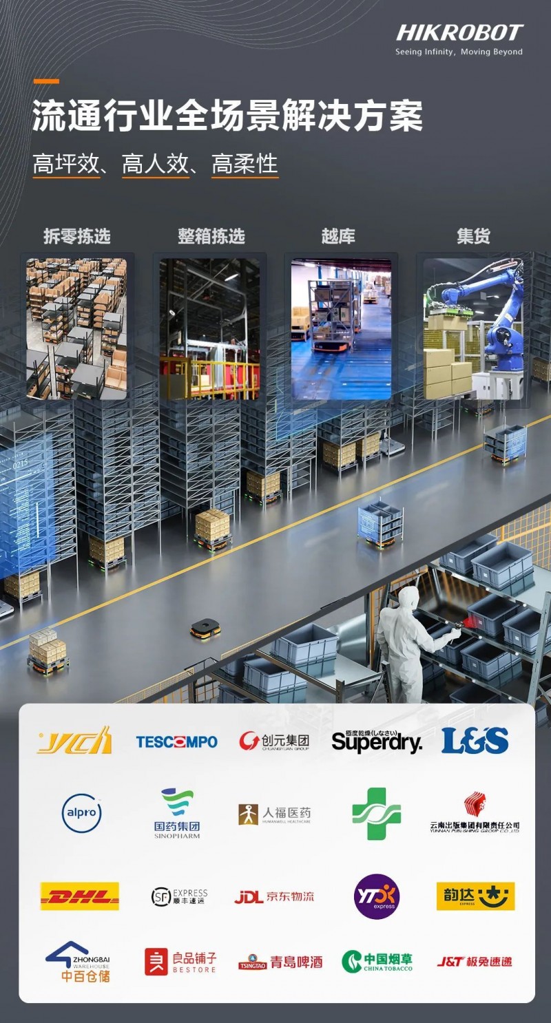 針對(duì)流通行業(yè)的業(yè)務(wù)波動(dòng)量大、效率要求高、業(yè)務(wù)容錯(cuò)率低、庫(kù)容要求高等核心難題,結(jié)合豐富的產(chǎn)品線和解決方案、智能算法等全場(chǎng)景規(guī)劃能力,海康機(jī)器人為行業(yè)伙伴打造了高坪效、高人效、高柔性的解決方案,覆蓋電商零售、鞋服、煙草酒水、商超、圖書出版、3PL、醫(yī)藥等細(xì)分行業(yè)。