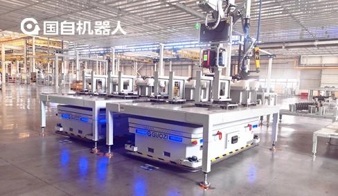 在生產線上,國自為每個生產工位配備移動機器人進行工藝流程運轉。與傳統輸送機相比,移動機器人能更加有效減少人工搬運,大幅提高生產效率,制造過程更安全,也更符合未來智能工廠高度柔性生產需求。