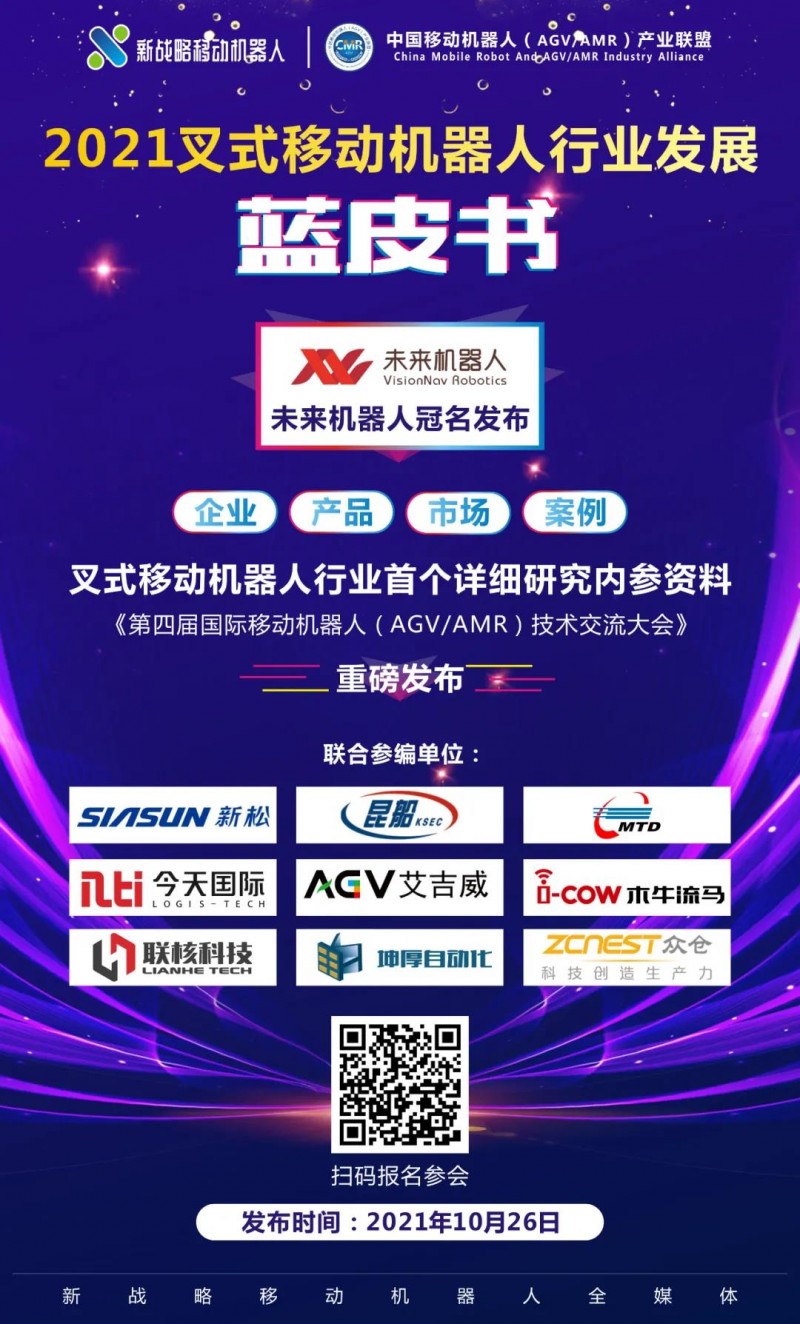 為了更透徹、更詳細(xì)的解析叉式移動機(jī)器人市場,中國移動機(jī)器人(AGV/AMR)產(chǎn)業(yè)聯(lián)盟與新戰(zhàn)略移動機(jī)器人產(chǎn)業(yè)研究所將聯(lián)合出版《2021叉式移動機(jī)器人行業(yè)發(fā)展藍(lán)皮書》,以行業(yè)首本藍(lán)皮書內(nèi)參資料,解讀最受關(guān)注的叉式移動機(jī)器人新市場。該藍(lán)皮書主要針對生產(chǎn)物料、線邊物流、智能倉儲、第三方供應(yīng)鏈物料及園區(qū)內(nèi)物流等應(yīng)用領(lǐng)域,面向全行業(yè)發(fā)行。同時將在2021年10月26日于上海主辦的《第四屆中國國際移動機(jī)器人(AGV/AMR)行業(yè)交流大會》上重磅發(fā)布。