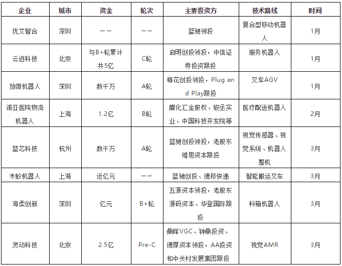 一季度,產品型公司開始集中爆發,展露頭角。先后都拿到了資本方大小不等的融資,市場推進開始加快。例如海柔創新、優艾智合、未來機器人等。經過前期的發展,這些產品公司的相關產品已經得到了市場驗證,開始進入成熟期,加上資本助力,市場拓展由此開始加速。