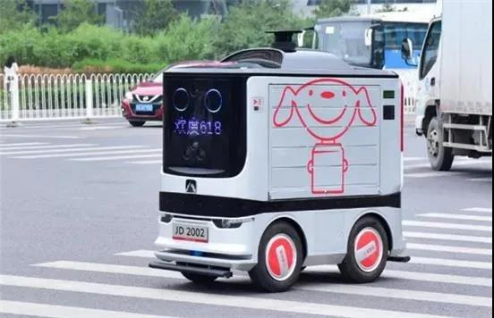 京東:2017年"6-18",京東首批試點運營的無人配送車在中國人民大學進行快遞投遞。2018年"6-18",在京東的北京上地配送站,20余臺配送機器人整齊列陣。隨著調度平臺命令發出,首批載有”6-18”貨物訂單的配送機器人依次出發,自動駛向訂單配送的目的地。