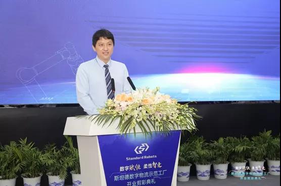 昆山市人大常委會主任張月林、昆山市人民政府副市長張建成、哈爾濱工業大學副校長張文叢、陸家鎮黨委書記方勇、陸家鎮黨委副書記/鎮長錢璁和斯坦德機器人總經理王永錕等眾多領導嘉賓為斯坦德數字物流示范工廠開業剪彩,市鎮領導與斯坦德機器人相關負責人共同為斯坦德機器人安全標準測試中心揭幕,并共同參觀了斯坦德數字物流示范工廠。