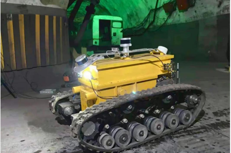 礦區(qū)目前主要應(yīng)用的巡檢機(jī)器人可分兩類,一是軌道式巡檢機(jī)器人,二是履帶式移動(dòng)巡檢機(jī)器人。由于礦區(qū)地形復(fù)雜,履帶底盤(pán)在通過(guò)性能上有更好的表現(xiàn),適合復(fù)雜不平整的地面環(huán)境。巡檢機(jī)器人攜帶環(huán)境探測(cè)模塊,可探測(cè)氣體、溫度、濕度、壓差等環(huán)境參數(shù)信息,同時(shí)還具備紅外圖像采集功能,圖像系統(tǒng)云臺(tái)可實(shí)現(xiàn)水平、垂直連續(xù)旋轉(zhuǎn),實(shí)現(xiàn)對(duì)井下危險(xiǎn)區(qū)域環(huán)境全方位探測(cè)。