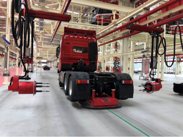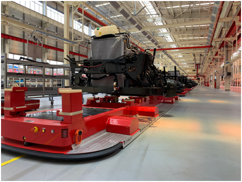 國內第一條實現重卡AGV單機背負磁條導航的自動化產線,采用低車身結構設計,方便操作人員上下車與AGV隨行裝配。實現整機的裝配柔性化,更好的適應廠房布局,對商用車/客車/軌道交通領域有示范作用。經濟性:產線使用AGV輸送,可以有效減少對土建及鋼構的需求,減少前期的投資,更適應商用車/客車/軌道交通的新廠房的建設。產品升級換代或者優化工藝時,如增加工位、修改節拍等,只需要調整AGV路徑或者數量即可,無需重新做基礎及鋼結構施工,可以更靈活方便地調整產線,二次投資更小。