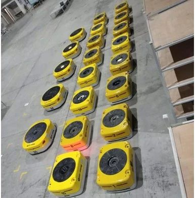 重載型AGV技術難點較多而且與輕載型的AGV設計結構有很大的不同,零部件選購標準也都不一樣,重載AGV在平穩度、靈活度和耐用性方面都會具有非常大的性能考驗。愷韻來自主研發的多輪組超低全向雙差速驅動總成,多輪組之間通過浮動減震系統來彌補地面的不平度,從而保證了多組輪系均與地面接觸,承載及驅動能力大幅加強。AGV驅動輪組具備提升系統:當某個輪組出現故障時,手動/自動提升該輪組,而其它隨動輪組繼續運行,使AGV能夠順暢駛離當前任務線路,不影響其他AGV運行,使整個AGV系統能夠順暢繼續當前任務。愷韻來自主研發的同步液壓頂升裝置,多組頂升單元之間采用電磁編碼器同軸控制原理,確保頂升過程平穩,安全。單組液壓單元還加入了預防油管爆裂瞬間下降,防失速功能。