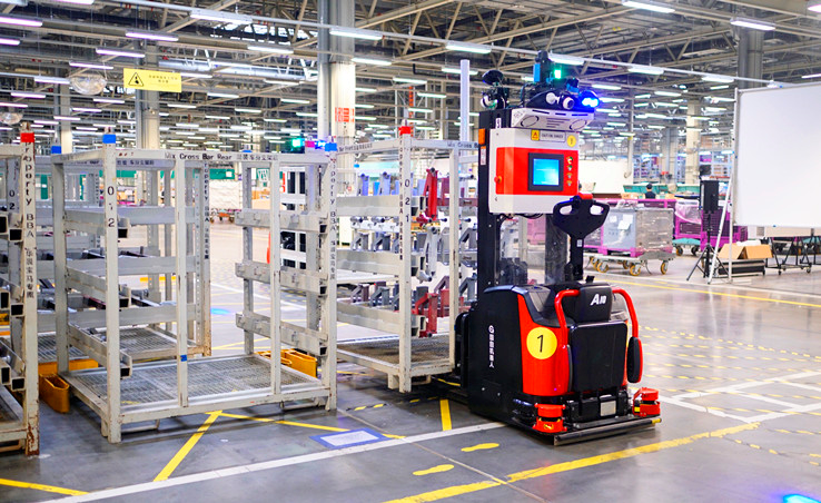 項目亮點/上榜理由:首例混合交通下自動導引機器人項目,且完美搭配自主開發軟件系統。客戶公司擁有汽車制造的完整四大工藝,同時廠區面積大,運輸距離遠,希望通過使用AGV來提高搬運零部件的準確性和及時性以滿足汽車線生產節拍要求,并要求能夠滿足混合交通情況下的安全和效率。