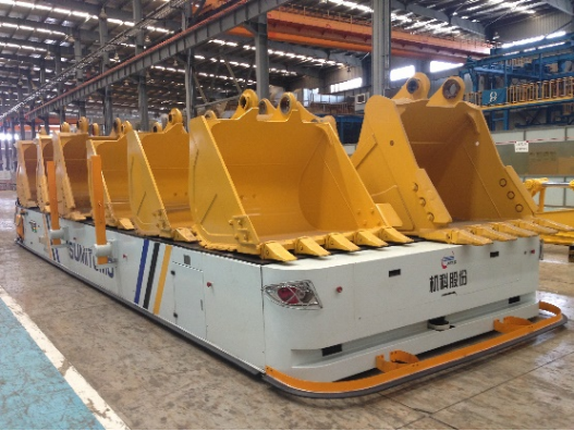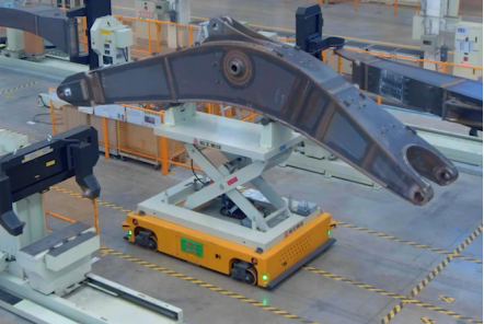 某著名工程機械公司“超級試驗工廠”已投入生產,這也是第一個全方位將AGV應用各類民用卡車制造領域的工廠,是重卡行業第一個全流程、全廠區內實現無人化物流轉運的工廠。做為重工行業的領導者,在其示范引領作用下,國內重卡制造領域必將迎來一次行業變革,推動行業提升智能制造水平,助力產業轉型升級。案例二:國自機器人某機械工程行業客戶大挖機生產線AGV搬運項目