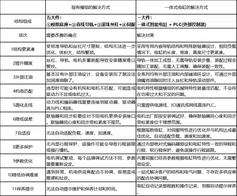 現(xiàn)有普通伺服模組和智能電缸的對比