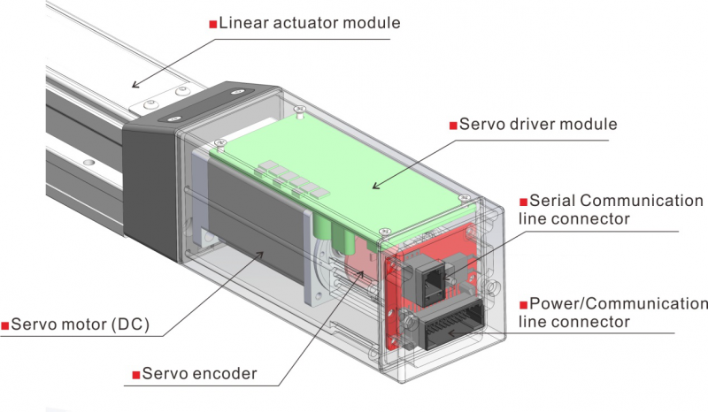 傳統(tǒng)模組的構成:①模組底座+②直線導軌+③滾珠絲杠+④伺服電機+⑤伺服驅動器 + PLC(外部控制器)