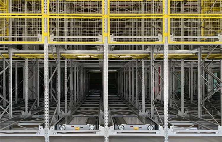 ▲ 極智嘉四向穿梭車應(yīng)用于洲明成品倉庫存儲