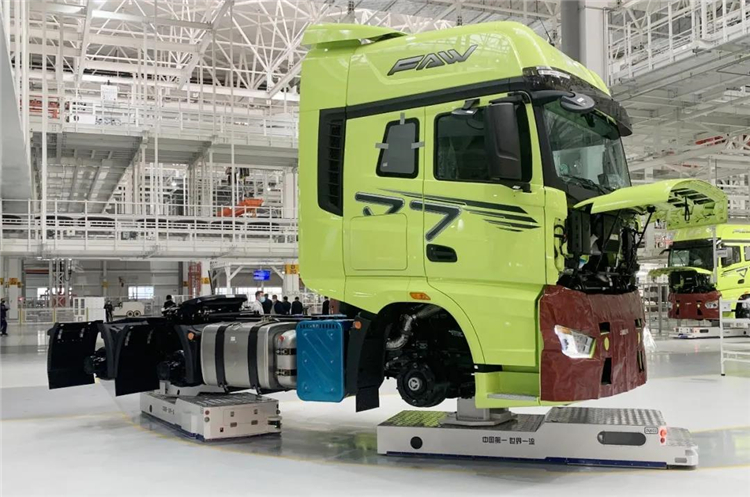 ▲ 一汽解放J7重卡亮相智能工廠落成投產(chǎn)儀式