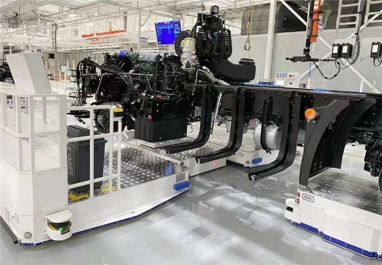 J7智能工廠聚焦國內(nèi)整車制造痛點(diǎn)及攻關(guān)難題,采用國際領(lǐng)先的制造裝備,融合解放先進(jìn)工藝技術(shù)和精益生產(chǎn)思想,致力實(shí)現(xiàn)智能化、柔性化生產(chǎn)。新松公司在移動(dòng)機(jī)器人領(lǐng)域擁有豐富的項(xiàng)目經(jīng)驗(yàn)與雄厚的技術(shù)儲(chǔ)備,這與一汽解放本輪技術(shù)升級的需求高度契合,雙方攜手開展項(xiàng)目合作,實(shí)現(xiàn)了移動(dòng)機(jī)器人技術(shù)對重卡總裝線各環(huán)節(jié)工藝的全流程覆蓋。