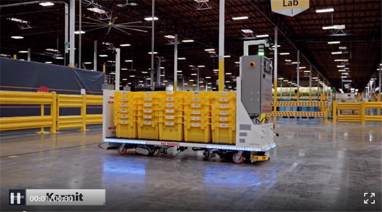 Kermit 相比于 Scooter 體型更小,會跟隨地面特制的布線運行,來運送儲物筐。亞馬遜表示,今年至少將會在北美的十幾個站點部署 Kermit,同時也將嘗試著對 Scooter 進行極少量的部署運作。